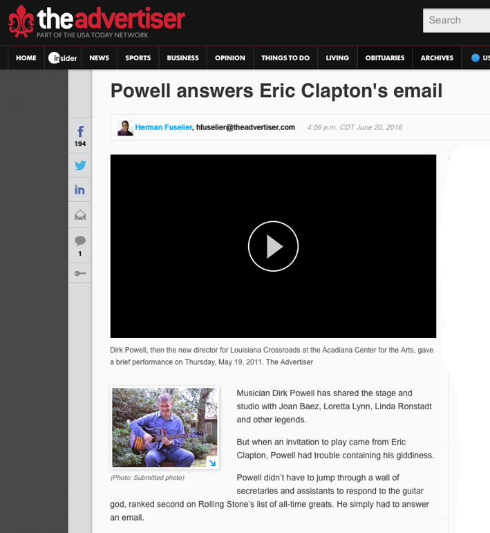 Im Rolling Stone-Newsletter ist auch ein kleiner Bericht über EC's Handicap