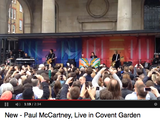 Wir alle kennen das in London! Völlig überraschend spielte Paul McCartney und seine Band heute (!) einen (oder mehr?) seiner neuen Titel Live im Covent Garden!